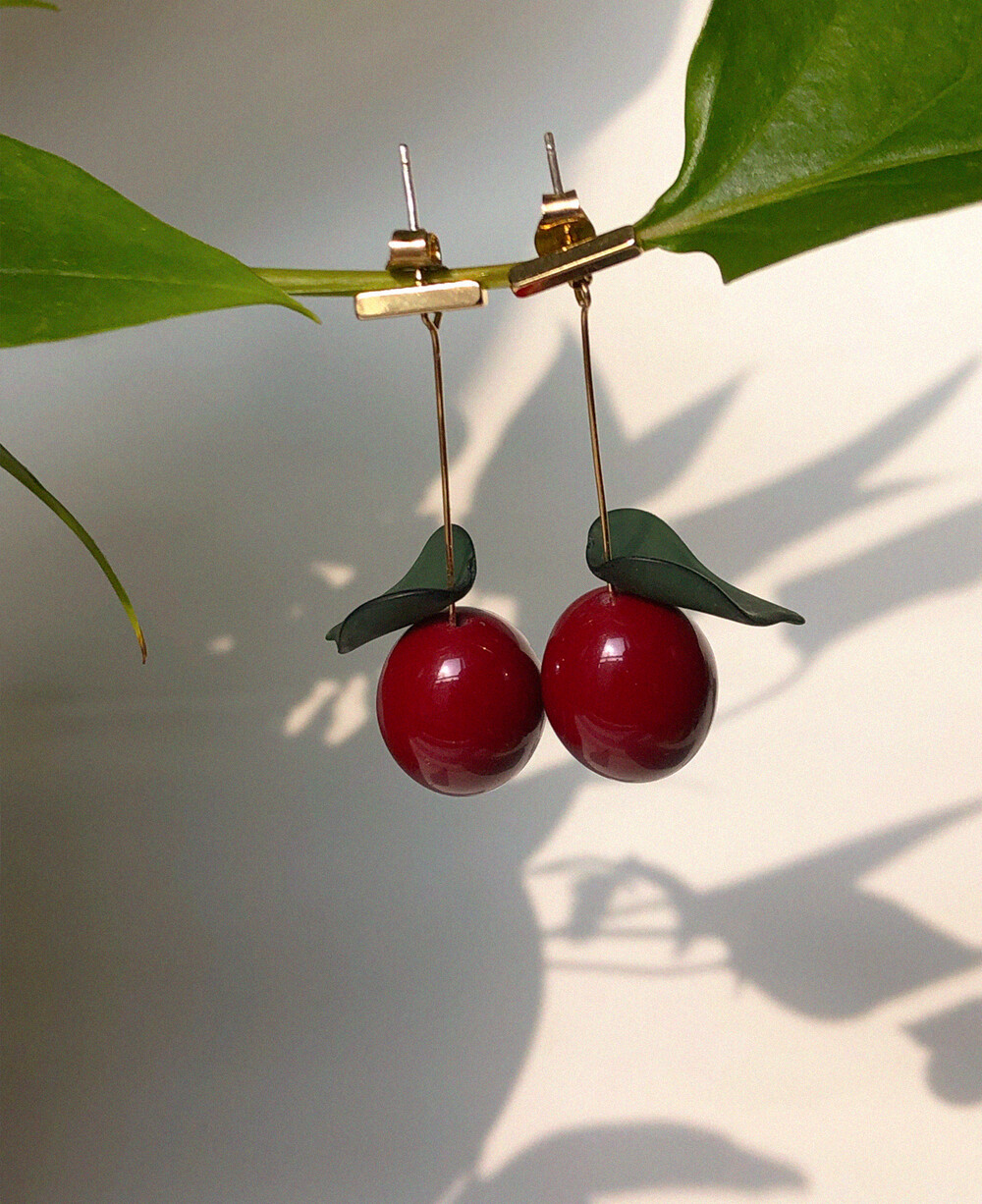 여성스럽고 러블리한 느낌의 여름 포인트 이어링 입니다. 체리부분의 소재는 플라스틱이 아닌 합성 원석 소재로 가볍고 고급스러운 컬러감이 특징입니다.