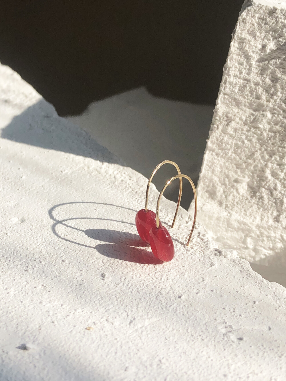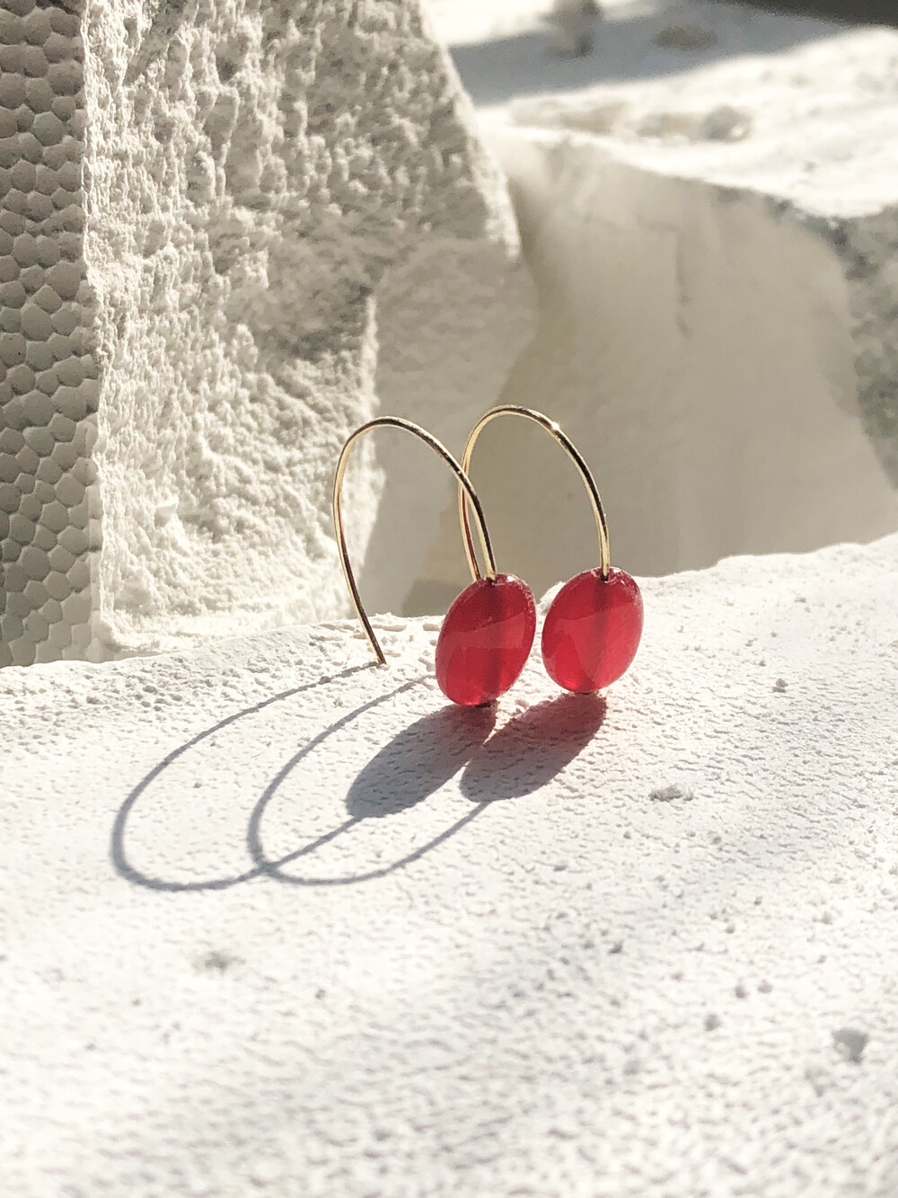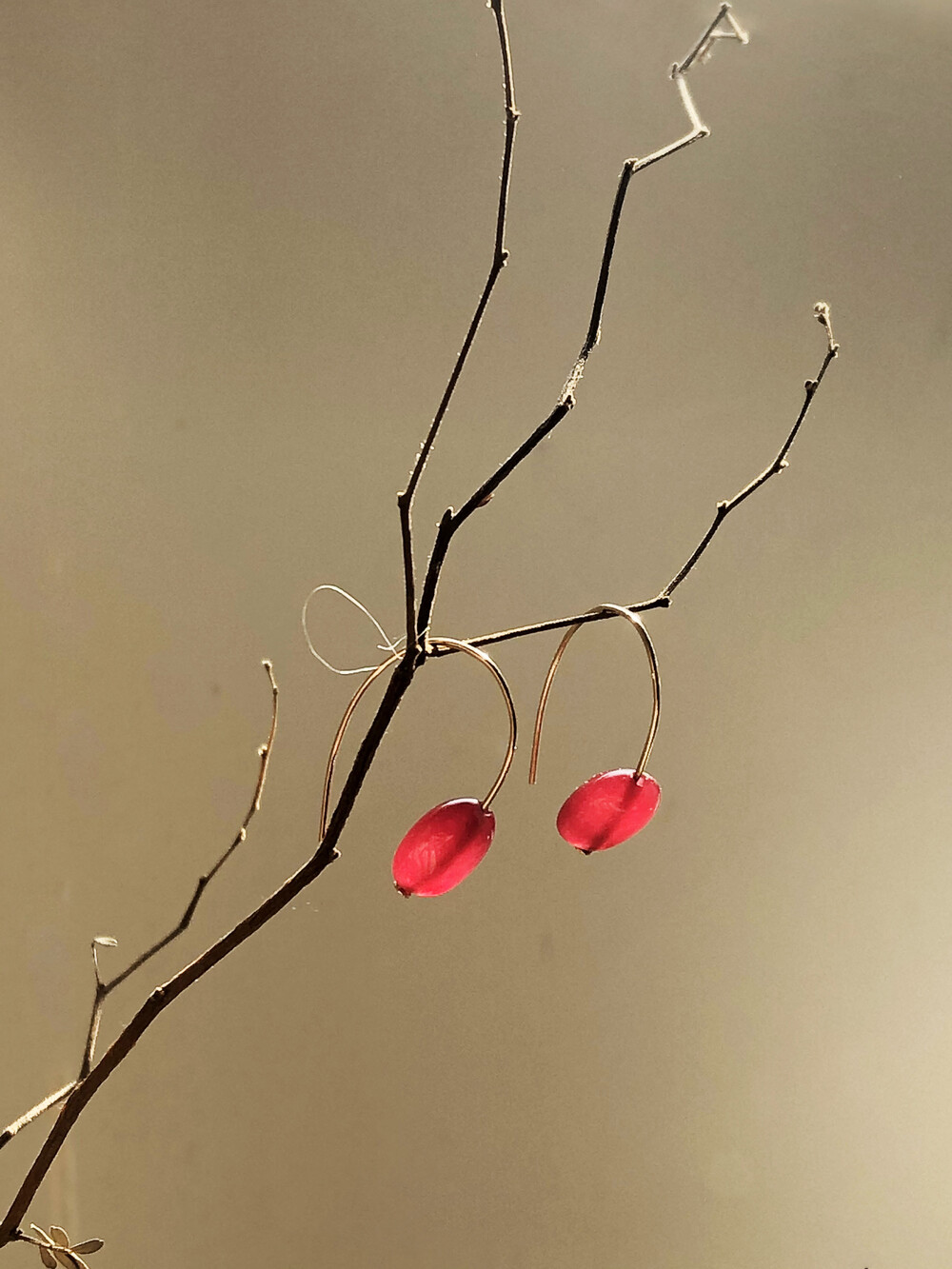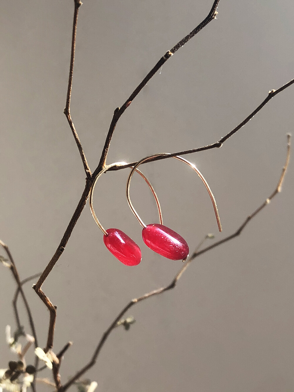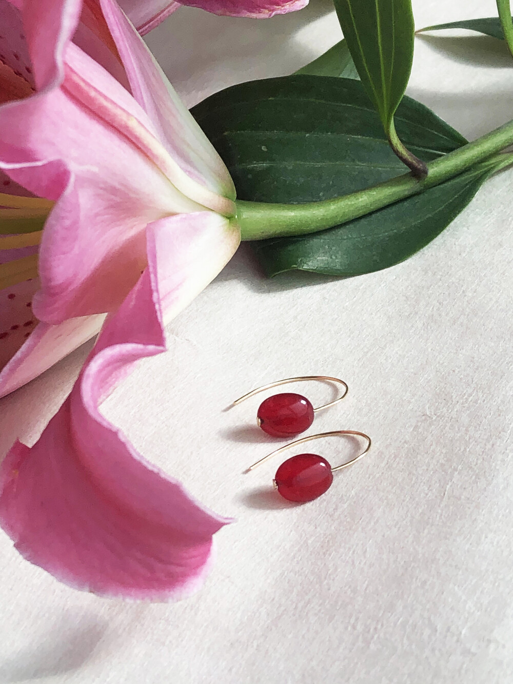 앵두빛을 띄는 원석 소재의 이어링 입니다.