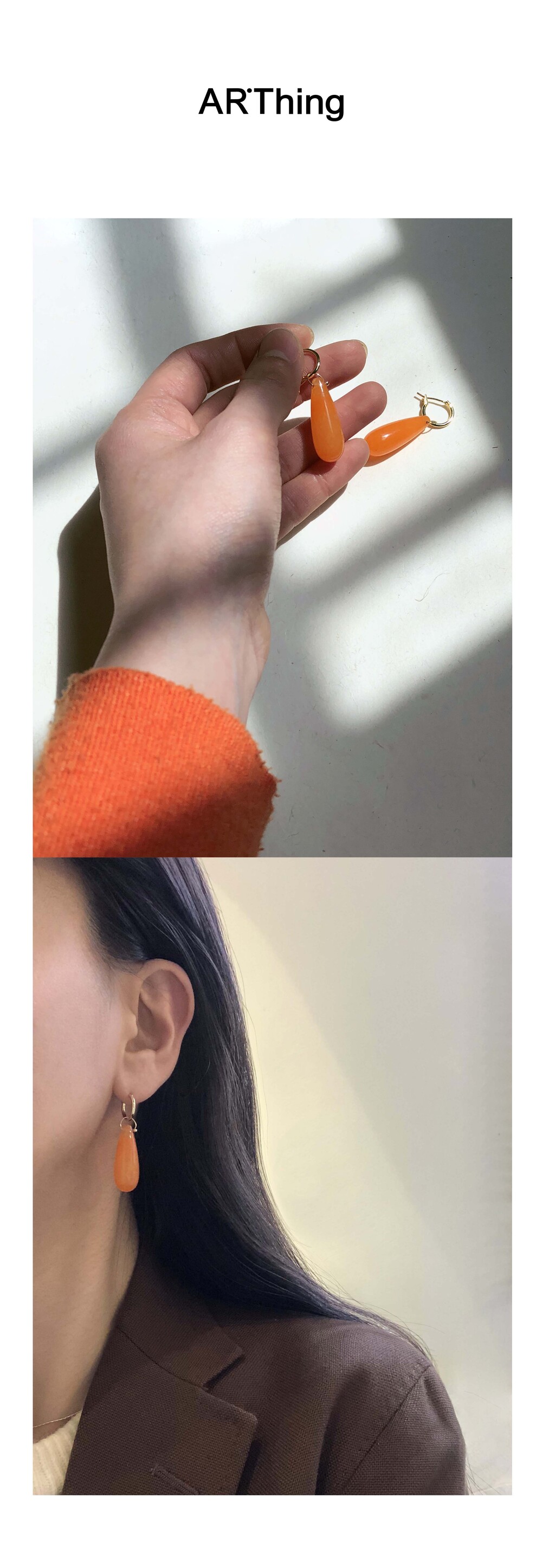 싱그러운 오렌지 컬러의 드롭형 이어링입니다.