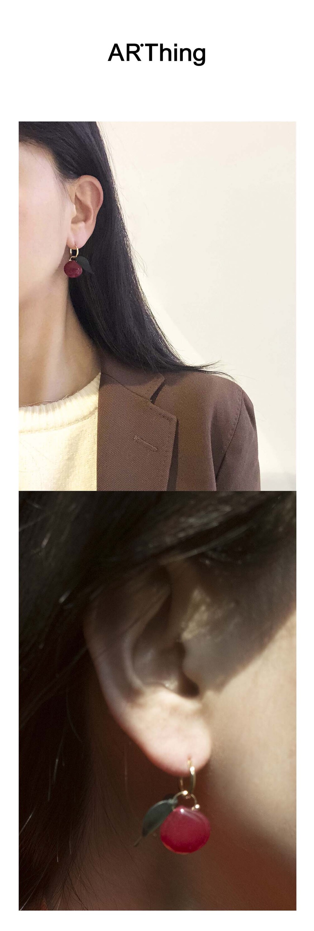 차분한 레드 컬러의 드롭형 이어링입니다.